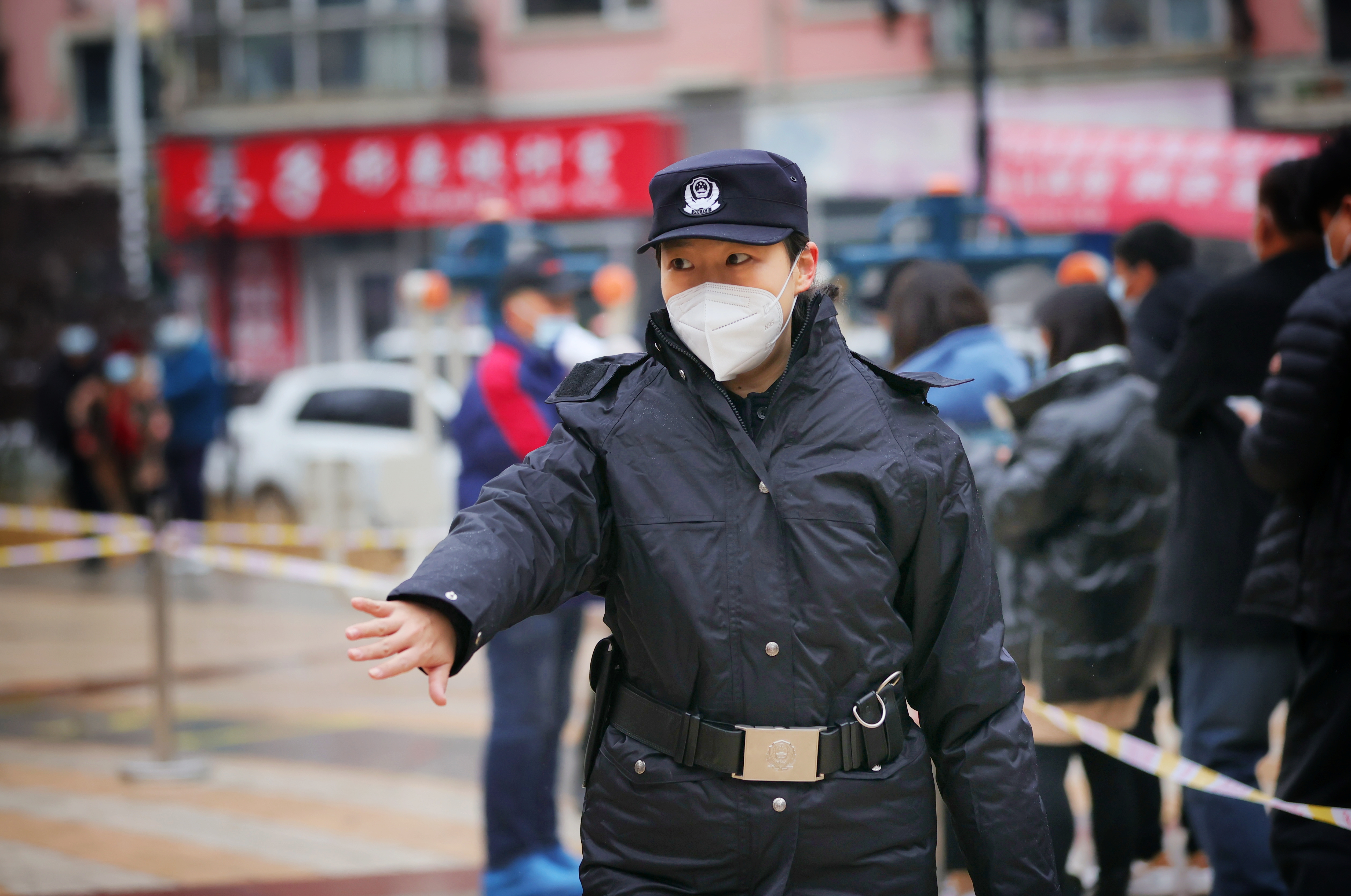 新華街道派出所女民警在取樣點執(zhí)勤