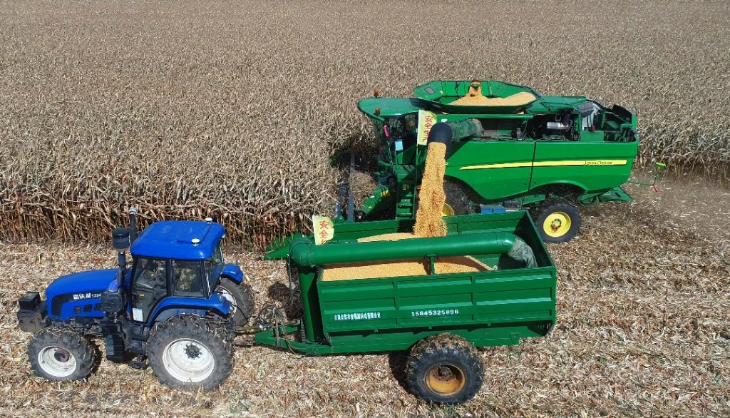 大型收獲機(jī)集群作業(yè)搶收玉米